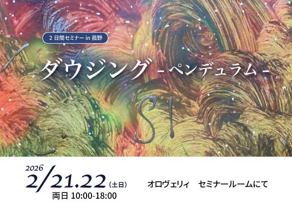 テーマ|ダウジング-ペンデュラム開催日|2026年2月21日(土)22日(日)時間|両日とも 10:00 -18:00会場|オロ