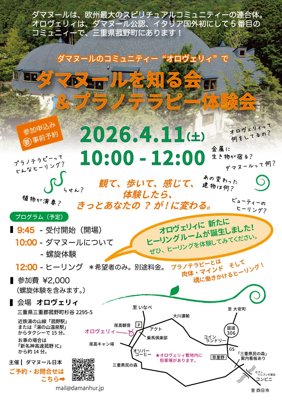 ダマヌール公認のコミュニティーが三重県菰野町にあるオロヴェリィにて行います。