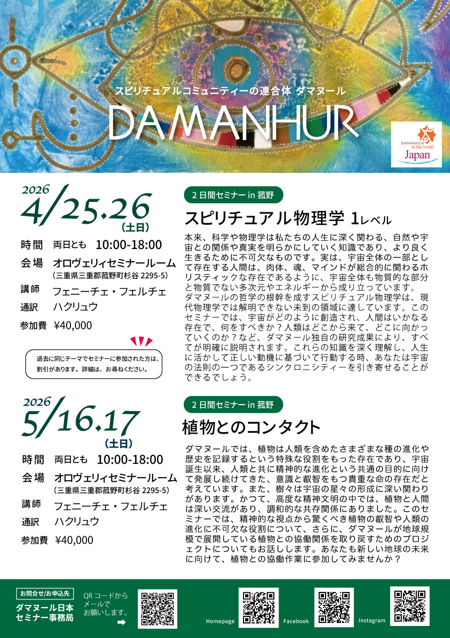 2026年も”魂の進化を加速”するセミナーを開催します。